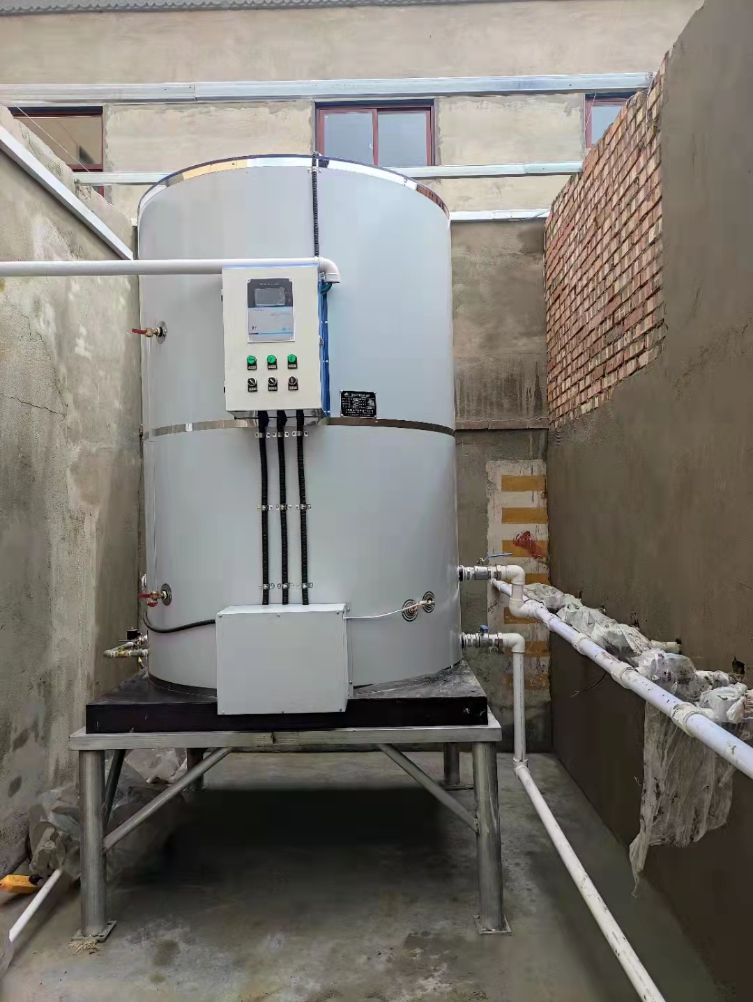 2021年8月7日,订购一台36千瓦2吨电开水锅炉,新整的锅炉房,等电开水炉安装调试好再封房顶!