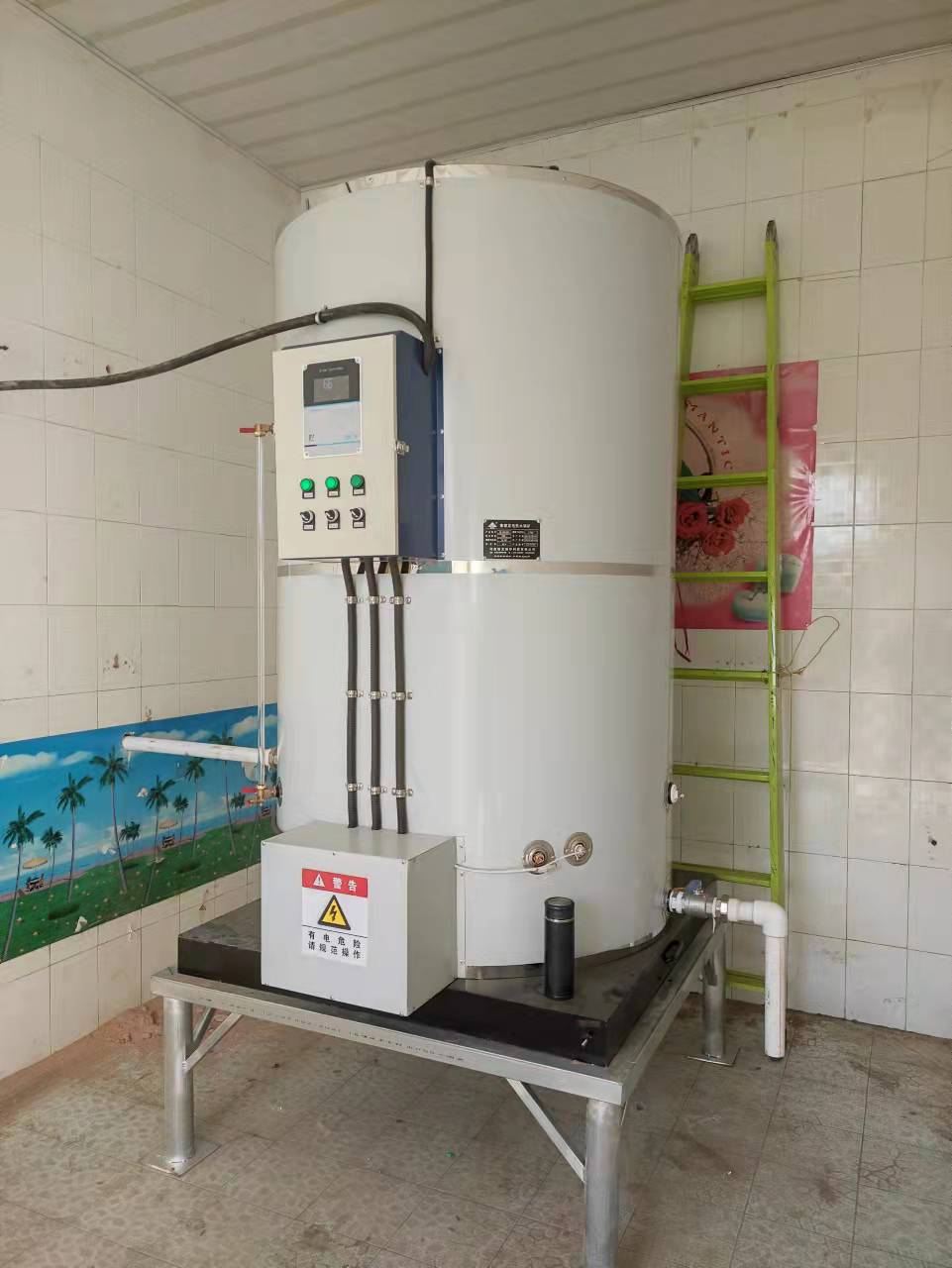 2021年12月份为甘肃省庆阳市正宁县第三中学定制的一台24千瓦1.5吨电开水炉,于12月15日安装调试完毕,并交付校园使用!