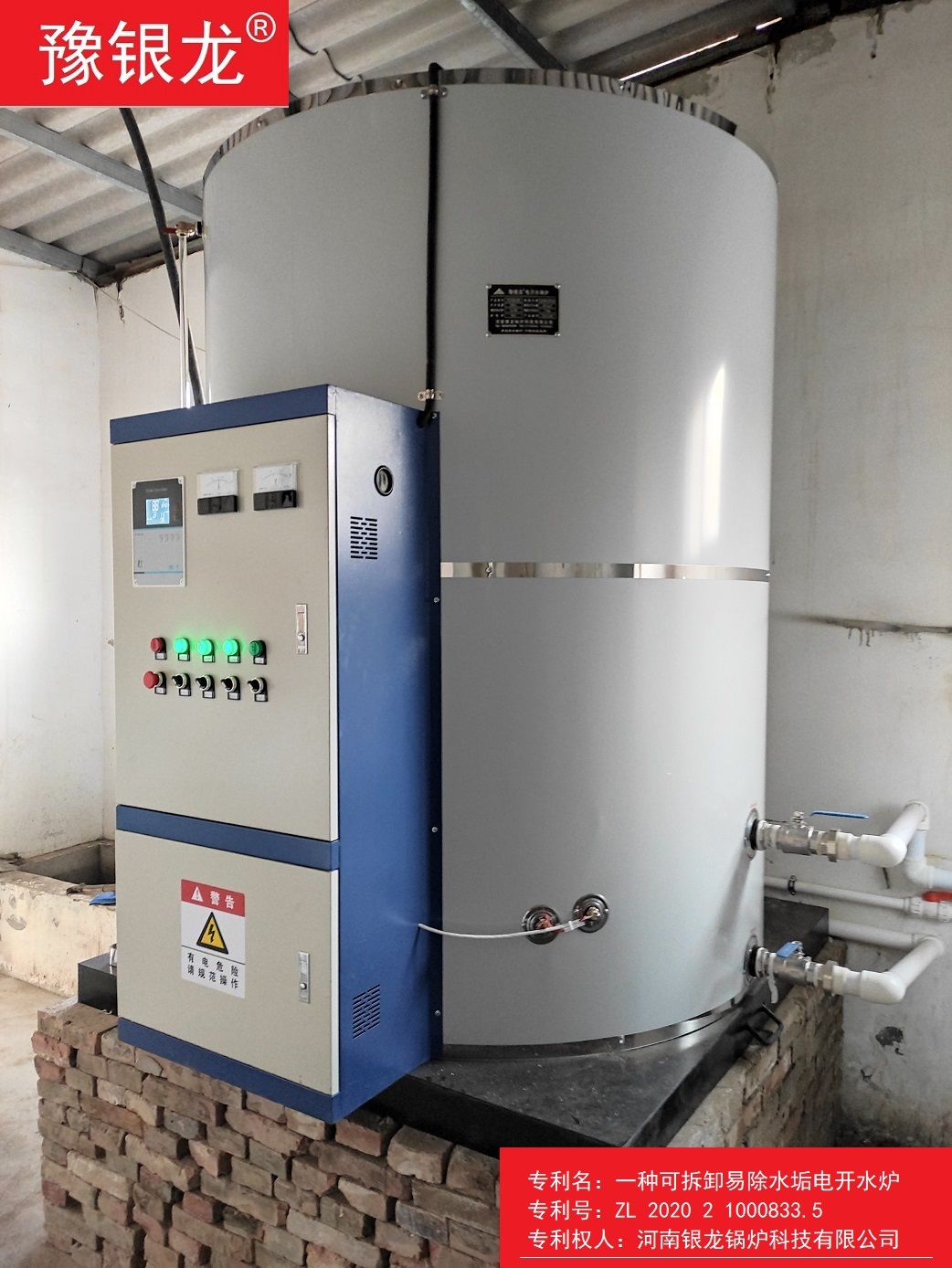 为了化解除垢难题,经过研发设计,我们生产出一款可拆卸易除垢双胆构造的电开水炉,该炉型采用组合式法兰连接可拆卸加热部件,拆下方型法兰,即可通过人孔一样大小的法兰口把炉内水垢清理出来,基本上不使用除垢剂就可以完成,这样新型的电开水炉设计,不仅清除水垢方便快捷,而且饮水安全卫生。该新款易除垢电开水锅炉已取得使用新型专利证书,专利号:ZL 2020 2 1000833. 5,购买可以除垢的电开水炉,请认准“豫银龙”商标,谨防假冒!